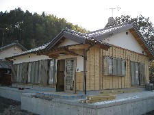 | 外回りの壁は漆喰仕上げ、シブイタなどで仕上げ、純和風のお家になりました。 |