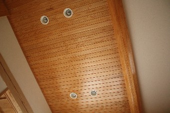 | 壁・腰壁・天井などに木の板を張り、梁を出した木のぬくもりを生かしました。 |