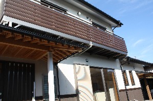 | 外回りの壁は漆喰仕上げ、シブイタなどで仕上げ、純和風のお家になりました。 |